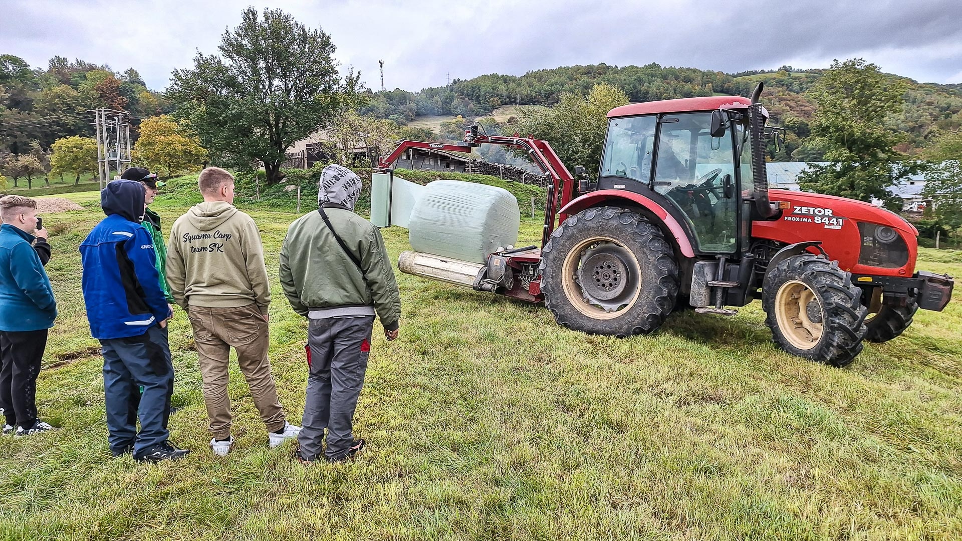 Žiaci 1.R triedy odboru agromechatronik prijali pozvanie na Agrofarmu Dianiška v Tisovci, kde sa zúčastnili odbornej exkurzie, zameranej na praktické ukážky zberu a spracovania zeleného krmiva. Počas exkurzie mali žiaci možnosť vidieť zber zeleného krmiva variabilným komorovým balíkovačom Kverneland 6716, obalenie zelenej lucerky fóliou na jej konzerváciu a následný odvoz balíkov na miesto uskladnenia. Zaujímavým spestrením programu bola aj možnosť vyskúšať si jazdu v traktore a sledovať priamo v teréne prácu obaľovača sena a senáže. Pre študentov to bola cenná skúsenosť, ktorá im umožnila prepojiť teoretické vedomosti s praxou a lepšie pochopiť moderné postupy v poľnohospodárskej technike. Agrofarma Dianiška, s.r.o. funguje od roku 1998 a nachádza sa v krásnom prostredí Tisovca na pasienkoch Národného parku Muránska planina. Farma sa zameriava predovšetkým na chov oviec a výrobu tradičných mliečnych výrobkov.