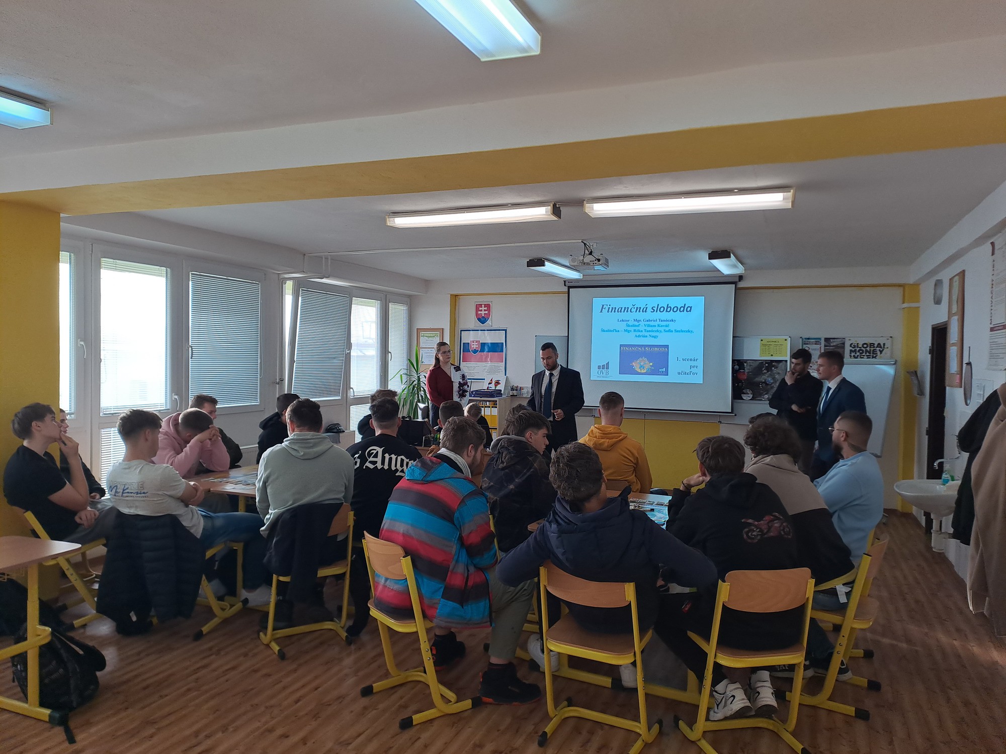 Pod záštitou OVB Allfinanz Slovensko, a.s., ako najväčšej finančnej sprostredkovateľskej spoločnosti na Slovensku, sa žiaci IV.R a IV.S zapojili do projektu s názvom Finančná sloboda. Žiaci, teda aktívni hráči, v spolupráci s lektormi realizovali formou hry finančné plánovanie fiktívnej rodiny, prechádzali s rodinou 30 rokov jej života, uzatvárali finančné produkty, čelili rôznym nástrahám života či radili v množstve finančných príležitostí. Stolová hra - Finančná sloboda má za cieľ zvýšiť finančnú gramotnosť nielen v rodinách, ale aj na základných, stredných a vysokých školách. Účelom hry je splniť všetky ciele rodiny, z ktorých najväčším je dosiahnutie finančnej nezávislosti aspoň v dôchodkovom veku.