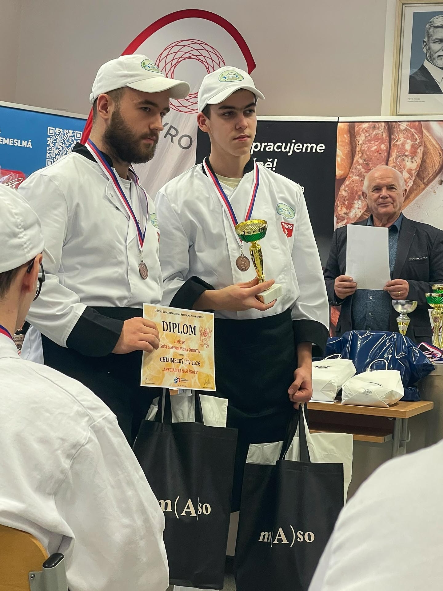 Titul Majster mäsiar V4 odborná porota udelila Kristiánovi Kozlíkovi a Nikolasovi Berkymu z SOŠ technickej a agropotravinárskej v Rimavskej Sobote. Na druhom mieste skončila študentská dvojica z Valašského Meziříčí z Česka, tretie miesto obsadili českí študenti z Nového Bydžova. Rimavskosobotskí študenti zvíťazili aj v národnej kategórii Národný majster mäsiar . Na druhom mieste skončila študentská dvojica zo SOŠ gastronómie a hotelových služieb v Bratislave, na treťom tím zo SOŠ Pod Bánošom v Banskej Bystrici.