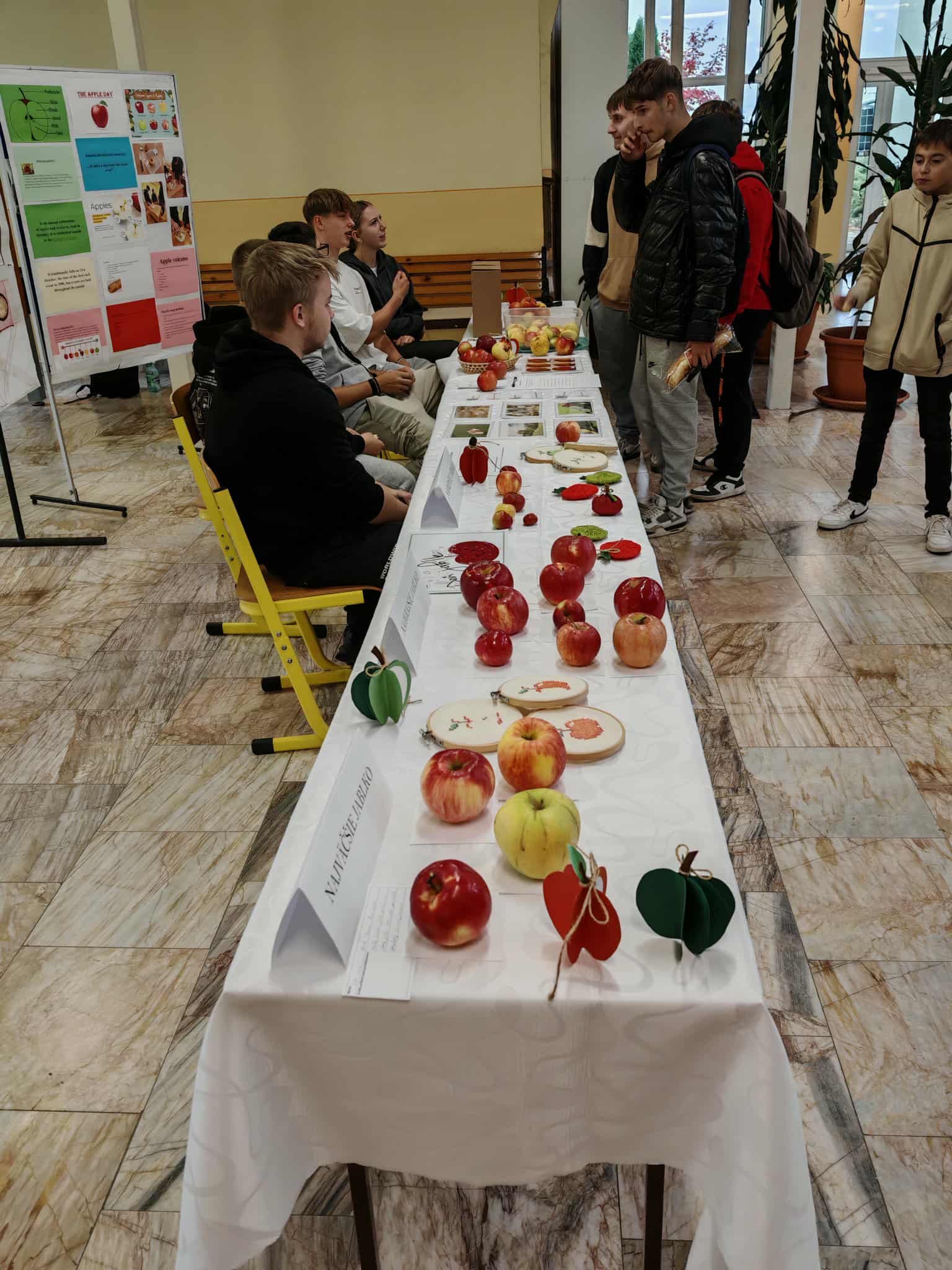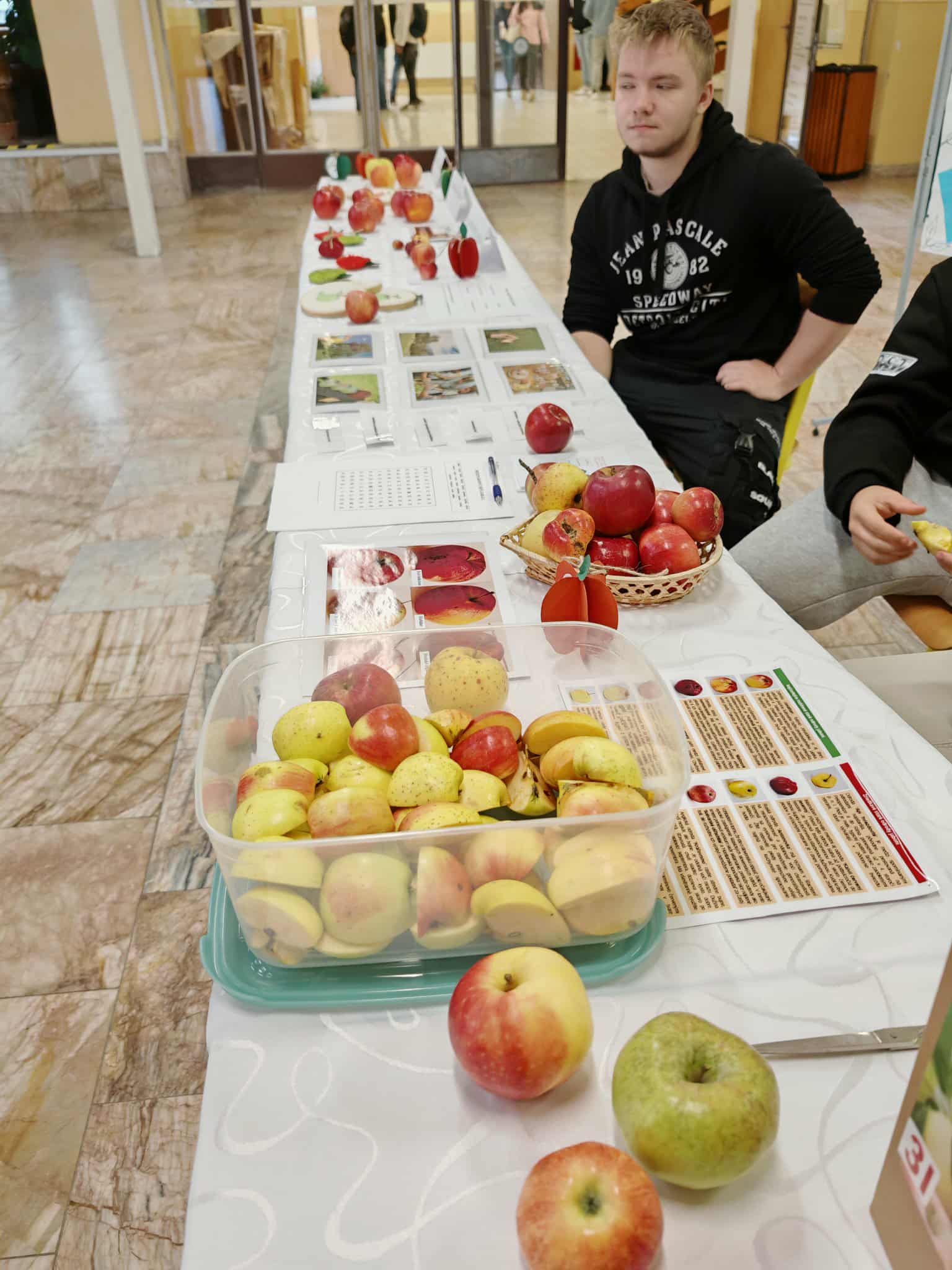 21. októbra môžeme všetci, ktorým nie je ľahostajné kultúrne dedičstvo, osláviť deň pôvodných odrôd jabĺk. Tento sviatok sa oslavuje od roku 2000 a je inšpirovaný dňom zvaným Apple Day, sláveným vo Veľkej Británii. Staré odrody jabĺk jednoznačne predstavujú naše kultúrne dedičstvo a práve tento druh ovocia je u nás pôvodným a hlavným ovocím. Pri príležitosti tohto dňa sa vo vestibule našej školy konala zaujímavá a veselá aktivita, ktorú pripravil školský parlament v spolupráci s koordinátorom environmentálnej výchovy. Cieľom akcie bolo pripomenúť si význam tohto zdravého ovocia, podporiť pestovanie tradičných odrôd jabĺk a spoločne sa zabaviť. Žiaci sa mohli zapojiť do súťaže o najzaujímavejšie jablko, ktorá pozostávala z troch kategórii – najkrajšie, najmenšie a najväčšie jablko. Do súťaže priniesli rôzne druhy jabĺk nielen žiaci, ale aj pedagogickí zamestnanci školy. Na stole sa teda nachádzali jablká v zastúpení od lesklých červených, až po drobné zelené jabĺčka zo záhrad. Porota mala naozaj ťažkú úlohu, pretože všetky súťažné jablká boli výnimočné. Nakoniec sa podarilo vybrať víťazov. V kategórii o najkrajšie jablko zvíťazilo jabĺčko, ktoré priniesol Martin Salva z II.R, najväčším jablkom sa pýšil Marek Dirbák z II.R a najmenšie vystavované jabĺčko do súťaže priniesol Matúš Kobyliak z III.R triedy . Okrem súťaženia čakali na žiakov aj zábavné aktivity. Mohli si vylúštiť osemsmerovku s jablkovou tematikou, zapojiť sa do kvízu o jablkách a zamyslieť sa nad tým, prečo je dôležité zachovávať pôvodné odrody jabĺk. Atmosféra bola priateľská a veselá, vestibul voňal po jablkách a nechýbal ani úsmev na tvári všetkých zúčastnených. Ďakujeme školskému parlamentu za prípravu tejto akcie, ktorá nám pripomenula, že „jedno jablko denne, udrží lekára ďaleko.“