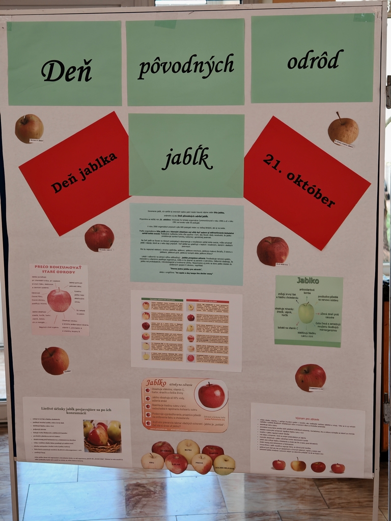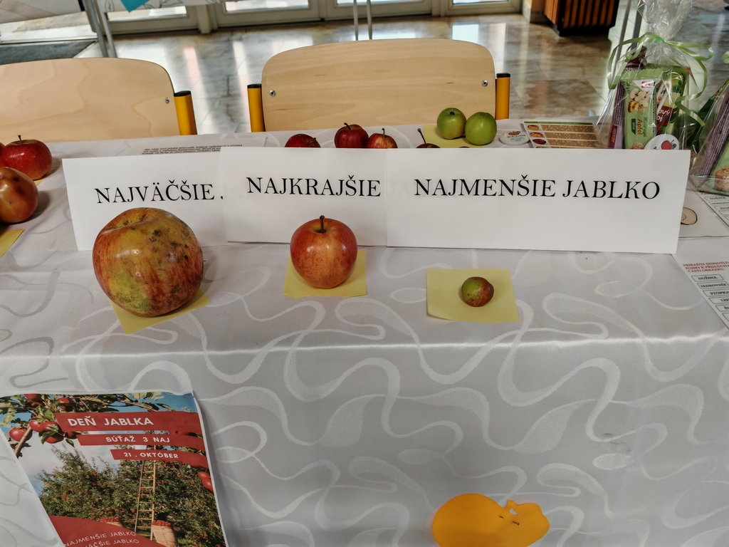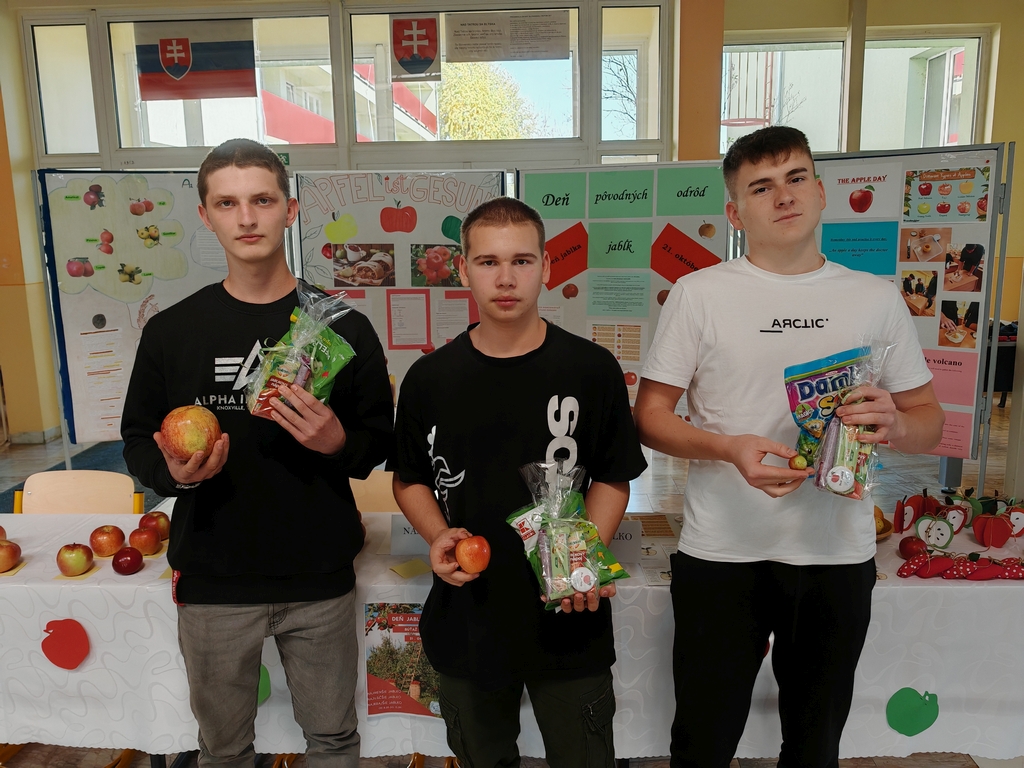 Na Deň jabĺk školský parlament v spolupráci s koordinátorom environmentálnej výchovy zorganizoval súťaž pod názvom „Tri naj“. Žiaci mohli súťažiť v troch kategóriách- o najväčšie jablko, najmenšie jablko a najkrajšie jablko. V kategórii najväčšie jablko zvíťazil Marek Dirbák z I. CR, najmenšie jabko priniesol Matúš Vývlek zo IV.R a porotu zaujalo najkrajšie jablko, ktoré priniesol Dávid Pongó z II.CR triedy. Okrem vystavených súťažných jabĺk vo vestibule školy žiačky I.FP a II.FP vystavovali svoje jabĺčka vyrobené kreatívnym spôsobom z rôznych materiálov a žiaci mohli ochutnať jablkové wafle a jablkovú štrúdľu, ktoré pripravili na odbornom výcviku. Tento deň si pripomíname každý rok 21. októbra. Jeho hlavným obsahom má vždy byť oslava aj zdôrazňovanie bohatstva odrôd tohto ovocia. Prváci študijných odborov informačné a sieťové technológie a agromechatronik vo všetkých ročníkoch si otestovali svoje vedomosti vo vedomostnom kvíze zameranom práve na pôvodné odrody jabĺk pestované na Slovenku, na nutričné zloženie jablka, jeho vplyv na zdravie a jeho využitie v rôznych pokrmoch.