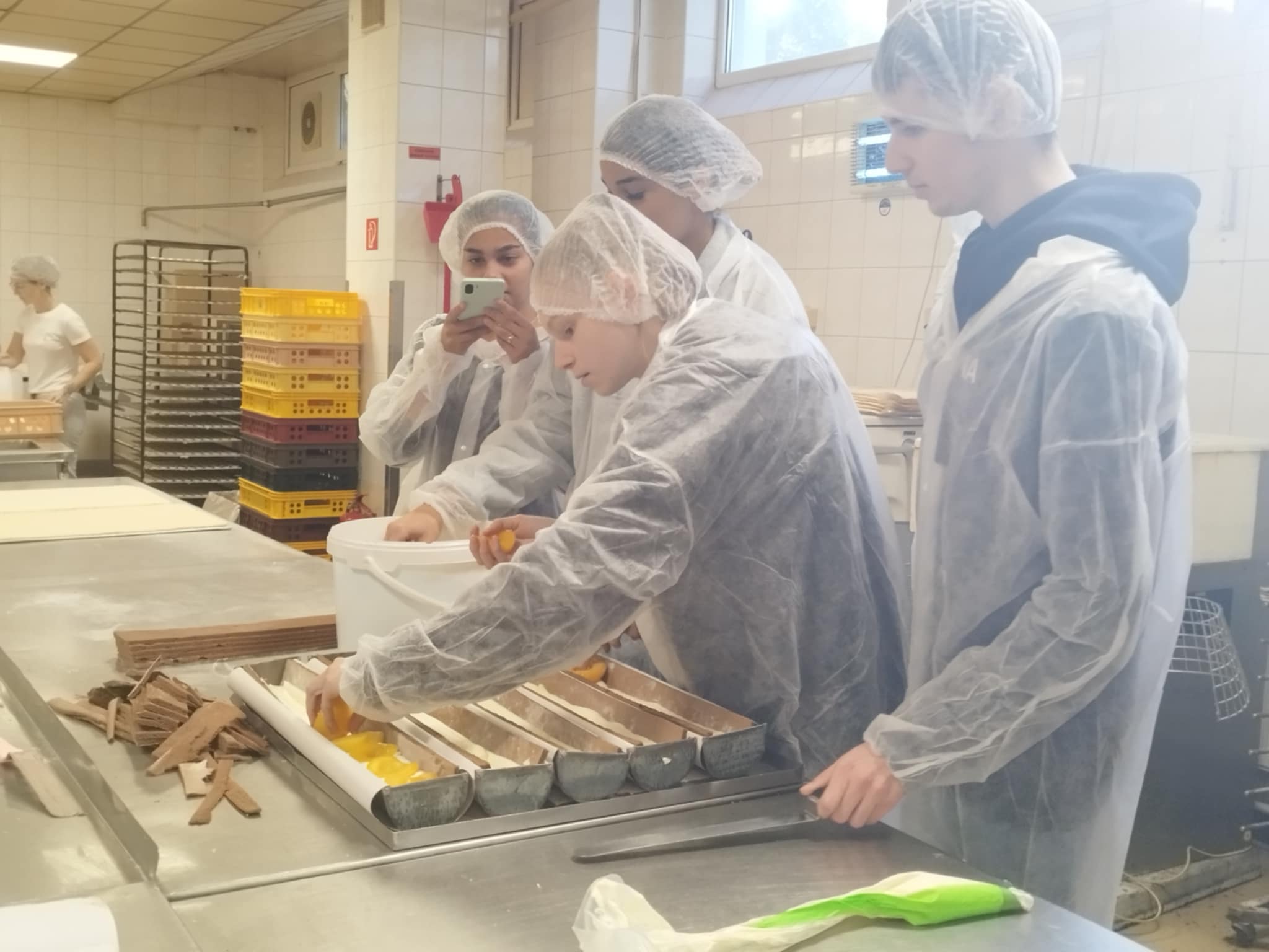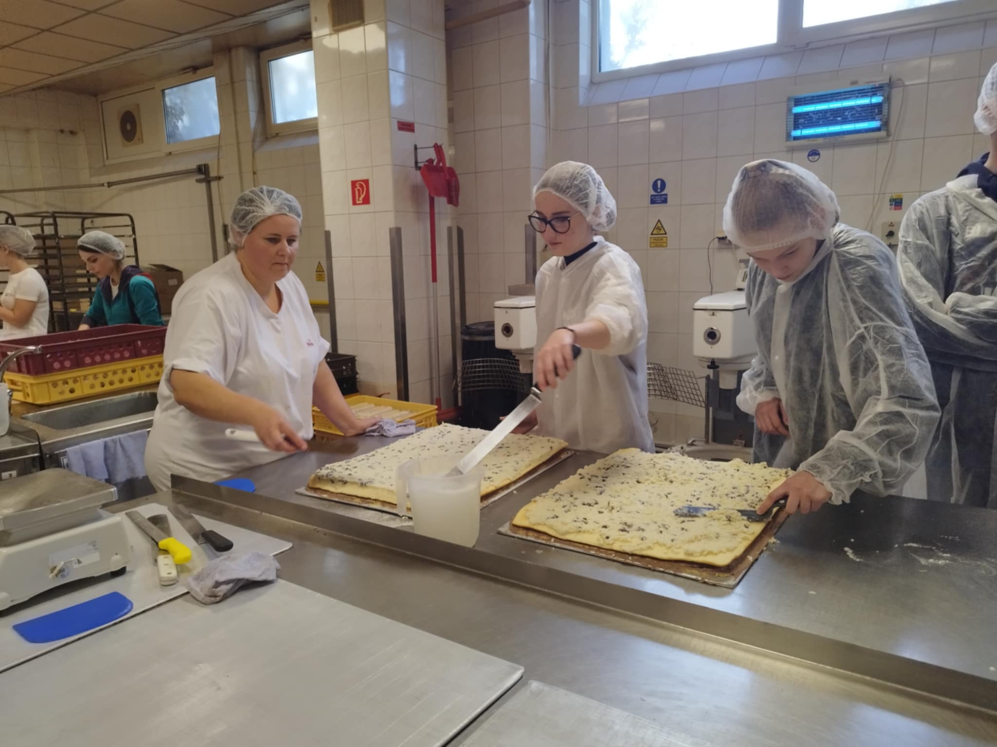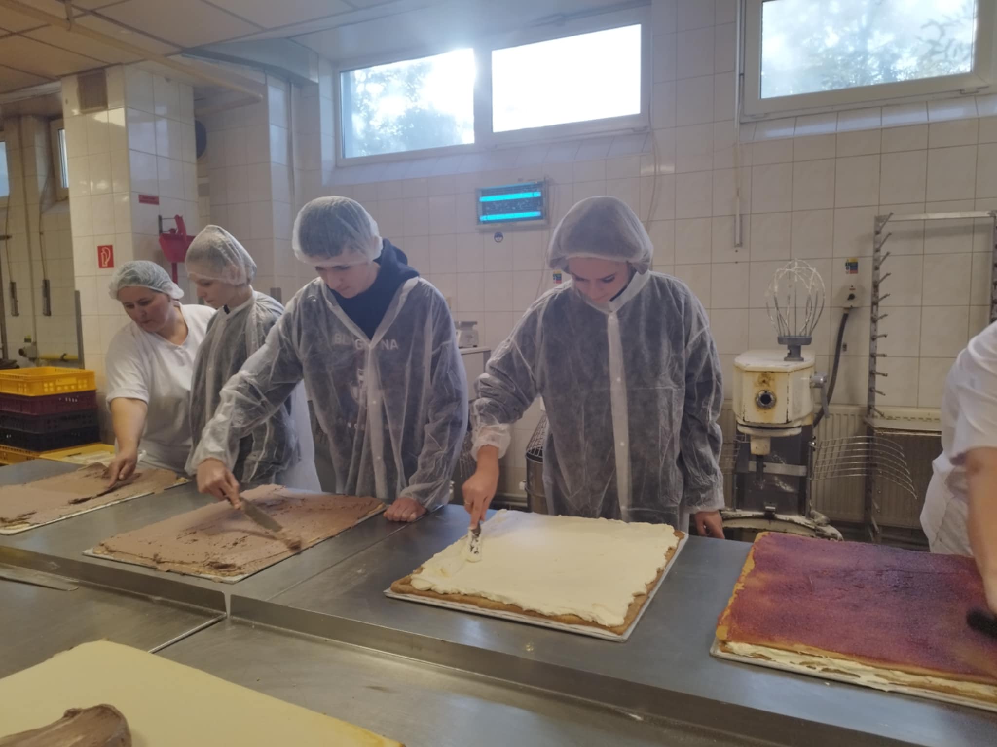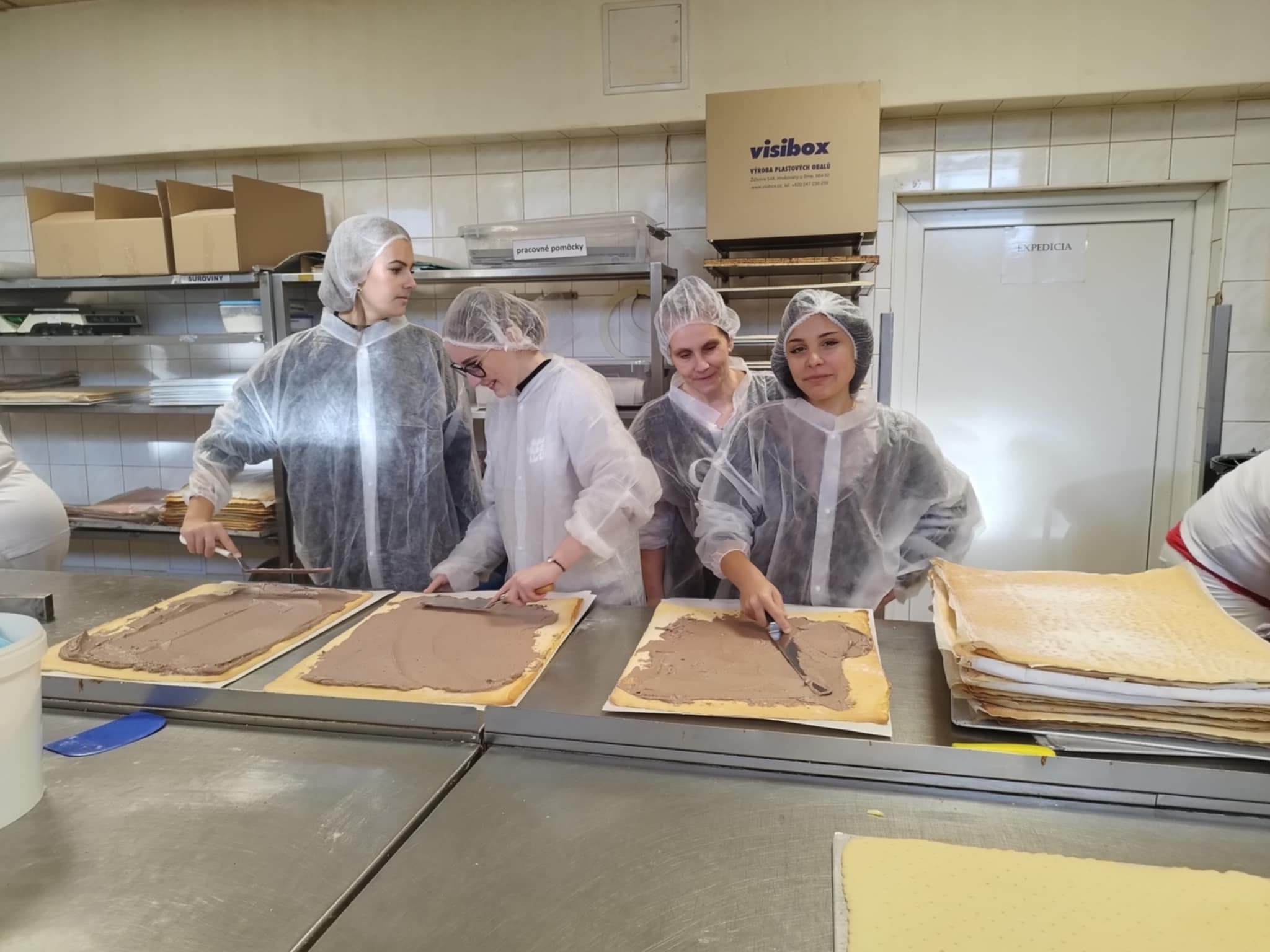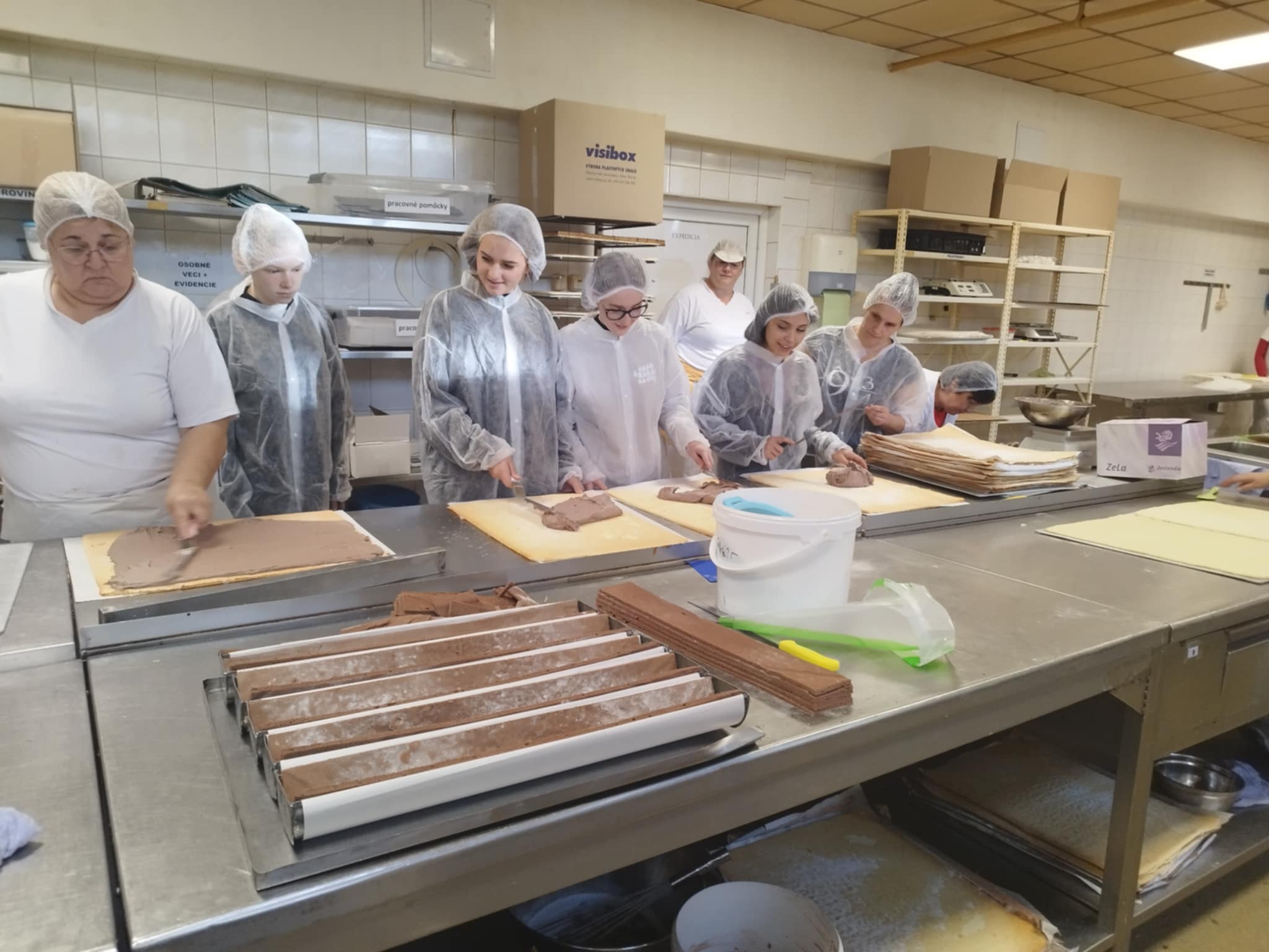 Exkurzia vo firme Penam, a.s. priniesla žiakom I.A triedy odboru cukrár pekár nové skúsenosti a zručnosti. Navštívili prevádzku v Lučenci, kde mali možnosť vidieť cukrársku výrobu a priamo sa začleniť do výrobného procesu pri príprave dobošových a medových rezov. Keďže ide o odbor s dvoma výučnými listami, okrem cukrárskej výroby si vyskúšali tiež pekársku veľkovýrobu- prípravu chleba a bežného pečiva. A neodišli naprázdno- odniesli si aj ochutnávky v podobe trvanlivého pečiva a pekárenských výrobkov. Iba prepájanie teórie s praxou môže byť zárukou dobrého výsledku. Ďakujeme za prijatie.
