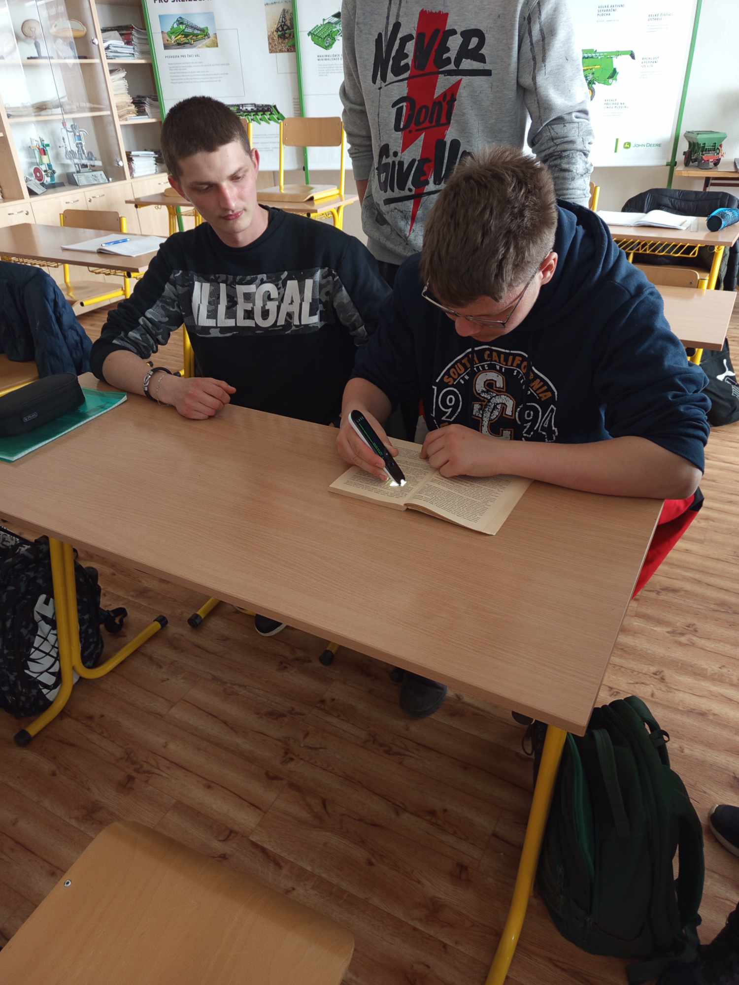 Mesiac knihy sme na hodine strojníctva s I.R a živočíšnej výroby s II.R ukončili čítaním odbornej literatúry. Tento mesiac je oslavou literatúry a čítania, a je venovaný propagácii kníh a podpore čitateľskej kultúry. Čítanie odbornej literatúry na hodine je dôležitým aspektom vzdelávania, ktorý môže prispieť k hlbšiemu porozumeniu témy, predmetu . Čítanie rôznych názorov a výskumov podporuje rozvoj kritického myslenia žiakov. Odborné texty napomáhajú žiakom rozšíriť slovnú zásobu, zlepšiť komunikačné schopnosti s použitím špecifickej odbornej terminológie. Na hodine si žiaci vyskúšali prenosné skenovacie pero, ktoré je navrhnuté tak, aby pomáhalo ľuďom s dyslexiou pri čítaní a písaní. Pero okrem skenovania textu dokáže text nahlas prečítať, čo je veľmi užitočné pre ľudí s dyslexiou. Umožní im to čítať a učiť sa samostatne. Nahlas čítaný text pomáha lepšie pochopiť obsah, zjednodušuje proces čítania, čím znižuje stres a frustráciu spojenú s touto poruchou učenia.