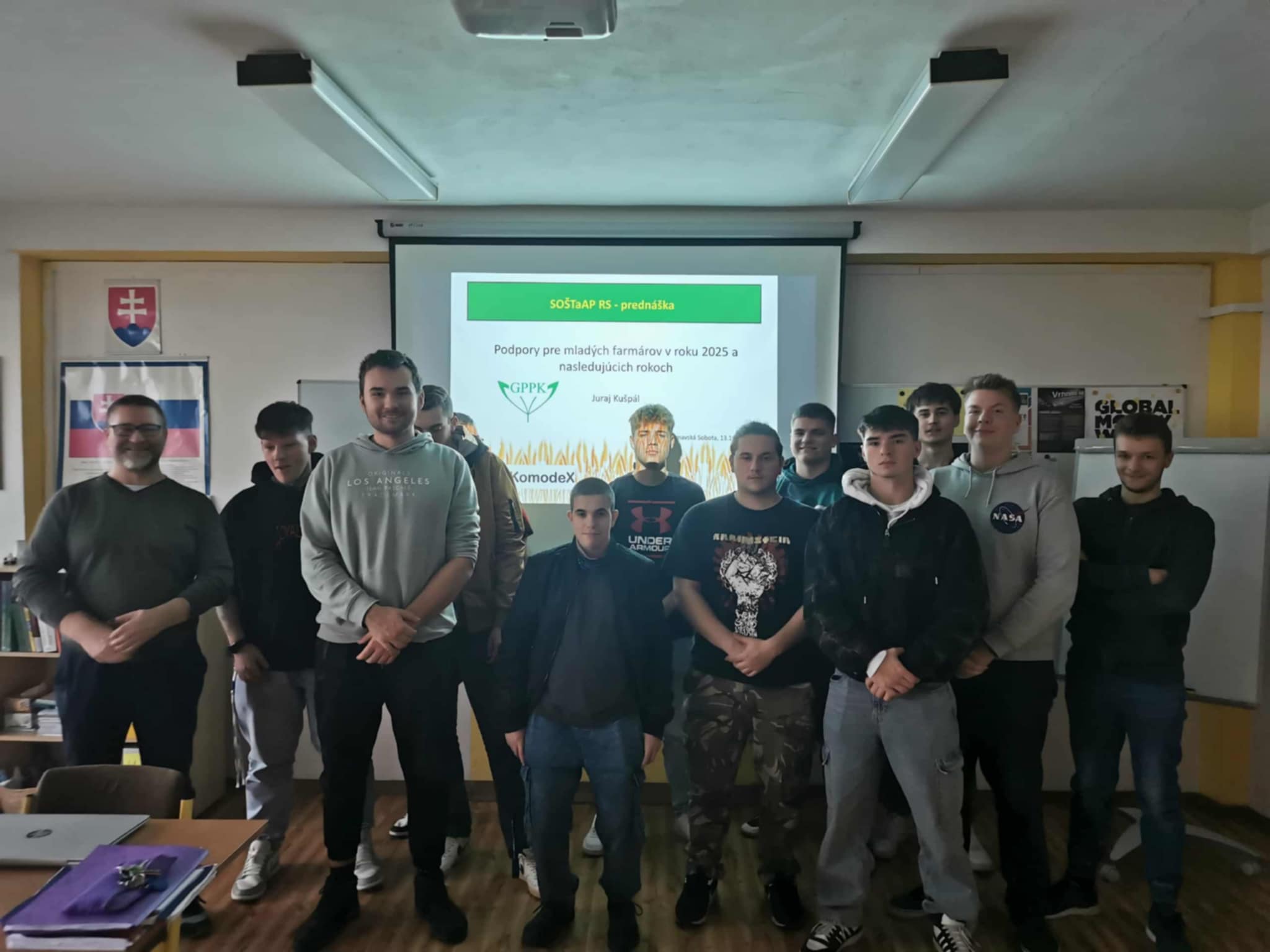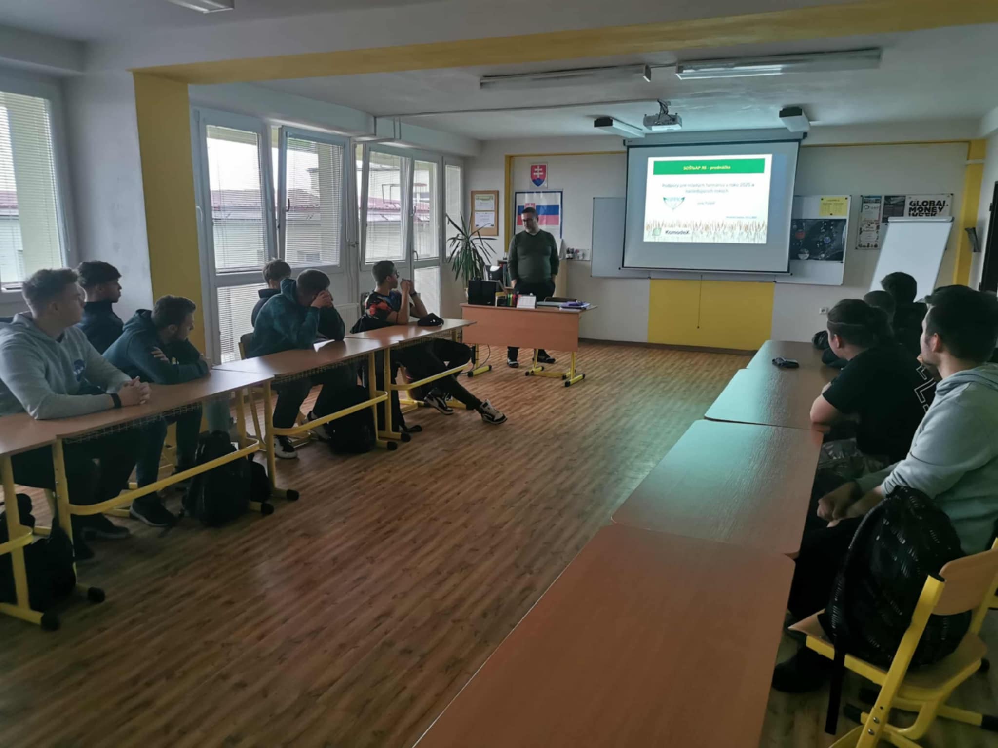 Budúcnosť európskeho poľnohospodárstva závisí aj od podpory mladých farmárov. Na Slovensku čelia mladí poľnohospodári viacerým výzvam, vrátane obmedzeného prístupu k pôde, či financovaniu. Dňa 13.11. sa žiaci IV.R, odboru agromechatronik zúčastnili prednášky na tému Podpora pre mladých farmárov v roku 2025 a nasledujúcich rokoch. Prednášajúci Ing. Juraj Kušpál - riaditeľ úradu Gemerskej poľnohospodárskej a potravinárskej kontroly, oboznámil žiakov s možnosťami podpory pre mladých farmárov. Vysvetlil žiakom podmienky na získanie priamej podpory pre mladých farmárov a informoval ich o aktuálnych a aj budúcich projektových výzvach.