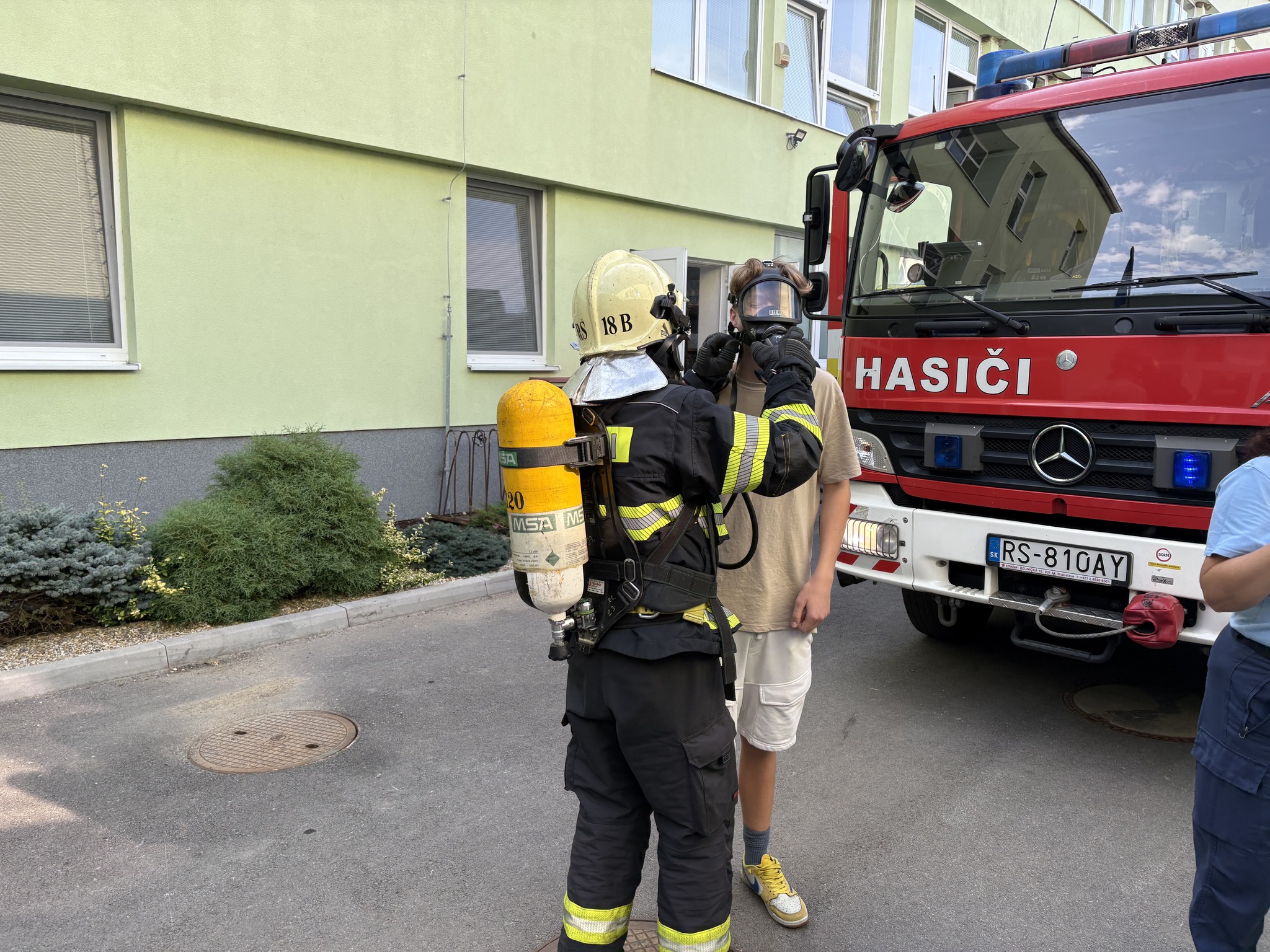 Horí! Tento signál zaznel v piatok 5. septembra na našej škole. Nasledovala rýchla evakuácia všetkých žiakov a zamestnancov školy do priestorov školského dvora. Išlo našťastie len o taktické cvičenie hasičskej jednotky OR HaZz v Rimavskej Sobote. Žiaci aj zamestnanci školy si tak vyskúšali, ako by mala vyzerať evakuácia v prípade skutočného požiaru. Rovnako aj príslušníci hasičského zboru si vyskúšali zásah na našej škole, ako aj vyhľadávanie osôb, ktoré sa nestihli evakuovať.