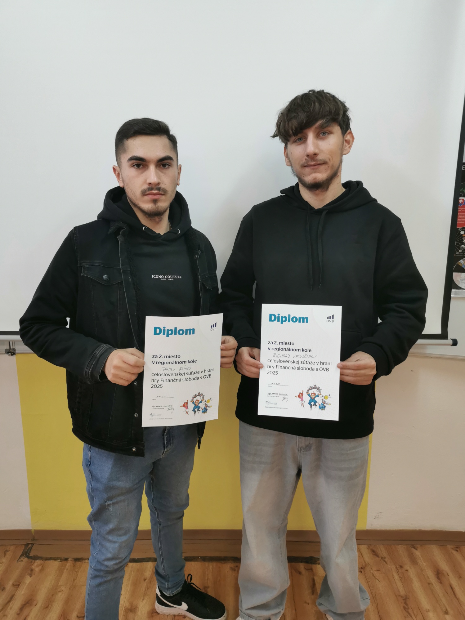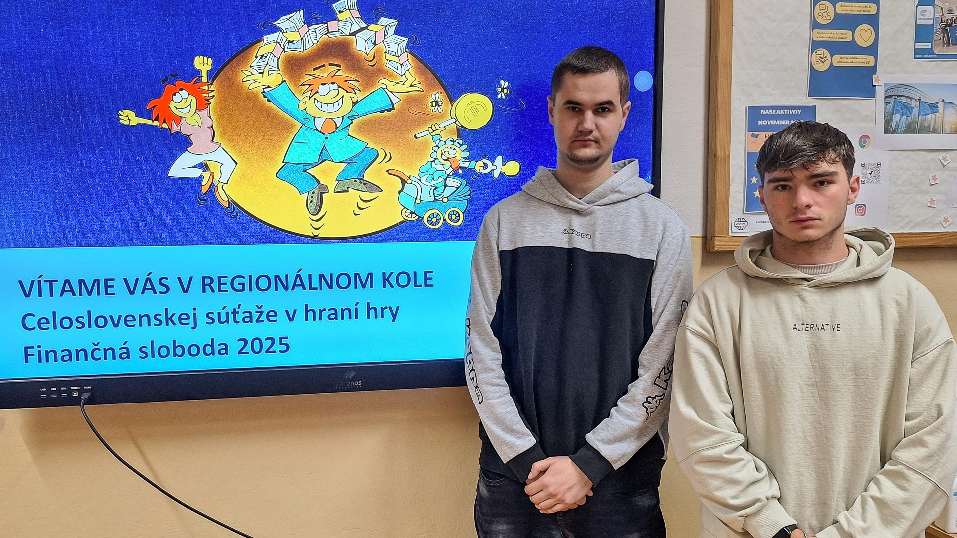20. a 21. novembra sa konalo regionálne kolo celoslovenskej súťaže Finančná sloboda 2025, v ktorej si študenti z rôznych stredných škôl zmerali sily v oblasti finančnej gramotnosti a strategického rozhodovania. Prvý deň našu školu reprezentovali dvaja žiaci - Viktor Megyessi a Roman Varga zo IV.R triedy. Žiaci pristúpili k súťaži s maximálnym nasadením. Počas hry ukázali nielen výbornú znalosť pravidiel, ale aj schopnosť logicky uvažovať a rýchlo reagovať na nečakané situácie, ktoré svet osobných financií neraz prináša. Hoci sa im napriek obrovskej snahe nepodarilo prebojovať na pódiové umiestnenia, podali výkon, za ktorý sa rozhodne nemusia hanbiť. Druhý deň nás reprezentovali Daniel Zsíros a Richard Vaculčiak zo IV.S triedy. Žiaci si vyskúšali náročnejší scenár hry - ich úlohou bolo zvládnuť finančné rozhodnutia, poradiť hernej rodinke, aké produkty zvoliť a preukázať tak svoje znalosti, ktorými dokážu splniť tri životné ciele. V silnej konkurencii naši žiaci vybojovali krásne 2.miesto a postúpili do finálového kola súťaže, ktorá sa uskutoční 3.12.2025 vo Zvolene. Svet financií a investovania je totiž presne taký – niekedy praje šťastie a inokedy človeku pripomenie, že aj dobrá stratégia môže naraziť na nepredvídateľné udalosti. Viktor aj Roman si však zo súťaže odniesli cenné skúsenosti, nové poznatky a motiváciu pracovať na svojich finančných zručnostiach ešte intenzívnejšie. Daniel a Richard nás budú reprezentovať ďalej a my im držíme palce!