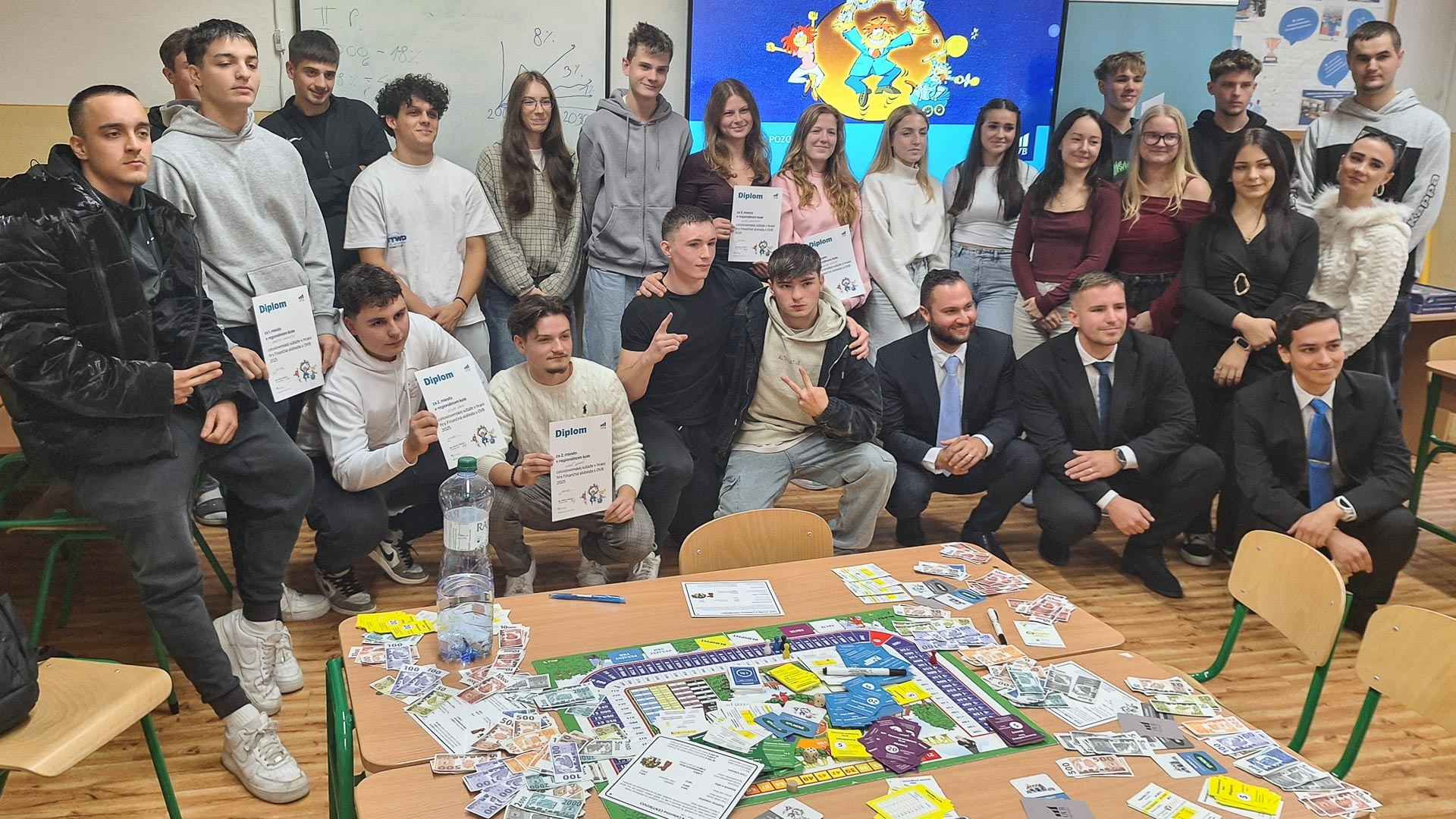 A Pénzügyi Szabadság 2025 verseny regionális fordulója: kiemelkedett diákjaink elszántsága és remek játéka November 20-án és 21-én rendezték meg a Pénzügyi Szabadság 2025 országos verseny regionális fordulóját, ahol különböző középiskolák tanulói mérhették össze tudásukat pénzügyi ismeretekből és stratégiai gondolkodásból. Az első napon iskolánkat két diák képviselte: Megyessi Viktor és Roman Varga a IV.R osztályból. Maximális lelkesedéssel vetették bele magukat a játékba, és nemcsak a szabályokat ismerték kiválóan, hanem azt is megmutatták, hogy képesek logikusan gondolkodni és gyorsan reagálni a személyes pénzügyek világának kiszámíthatatlan helyzeteire. Bár hatalmas igyekezetük ellenére most nem sikerült dobogóra állniuk, teljesítményükre mindenképpen büszkék lehetnek. A második napon Zsíros Dániel és Vaculčiak Richárd, IV.S osztályos tanulók képviselték iskolánkat. Ők egy összetettebb problémával néztek szembe: helyes pénzügyi döntéseket kellett hozniuk, tanácsot adniuk a játékbeli családnak a megfelelő termékek kiválasztásában, és így bizonyítaniuk tudásukat, amellyel három életcélt is el tudtak érni. Az erős mezőnyben diákjaink kiválóan helyt álltak, megszerezték a csodálatos 2. helyet, és továbbjutottak a verseny december 3-án Zólyomban megrendezésre kerülő döntőjébe. A pénzügyek és a befektetések világa már csak ilyen: néha mellénk áll a szerencse, máskor pedig emlékeztet arra, hogy még a legjobb stratégia is ütközhet váratlan kihívásokba. Viktor és Roman értékes tapasztalatokkal, új ismeretekkel és még nagyobb motivációval tértek haza, hogy tovább fejlesszék pénzügyi készségeiket. Dánielnek és Richárdnak pedig sok sikert kívánunk a döntőben – szorítunk nekik!