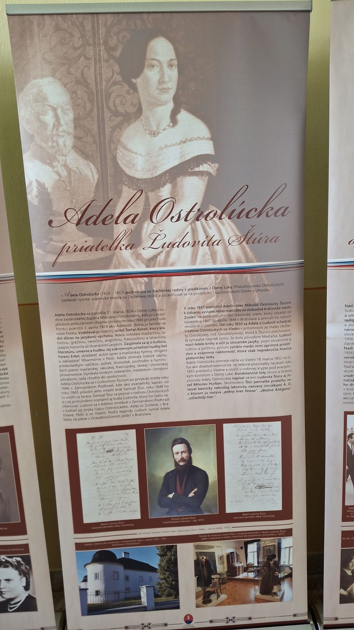 Návštevníci majú možnosť oboznámiť sa s dobovými fotografiami, listami, historickými dokumentmi a svedectvami o pôsobení mnohých slovenských žien, ktoré sa zapísali do dejín najmä svojou podporou vzdelanosti, kultúry a šírenia národného povedomia. Adela Ostrolúcka, známa ako blízka spolupracovníčka a priateľka Ľudovíta Štúra, bola príkladom vzdelanej ženy, ktorá sa zaujímala o literatúru a politiku, a nebála sa prejaviť vlastný názor. Anna Hurbanová, manželka Jozefa Miloslava Hurbana, bola nielen jeho životnou partnerkou, ale aj aktívnou osobnosťou verejného života, ktorá podporovala osvetovú činnosť, šírenie národných myšlienok a bola vzorom výchovy v duchu národnej identity. Podujatie poslúži učiteľom slovenského jazyka, aby študentom názorne vysvetlili, že dejiny netvoria len známe mená politikov, básnikov či učencov, ale aj odhodlané ženy, ktoré stáli pri nich. Výstava tak slúži nielen ako spomienka na výročia dvoch významných osobností, ale aj ako inšpirácia pre mladú generáciu, aby si vážila hodnoty, za ktoré naši predkovia bojovali.