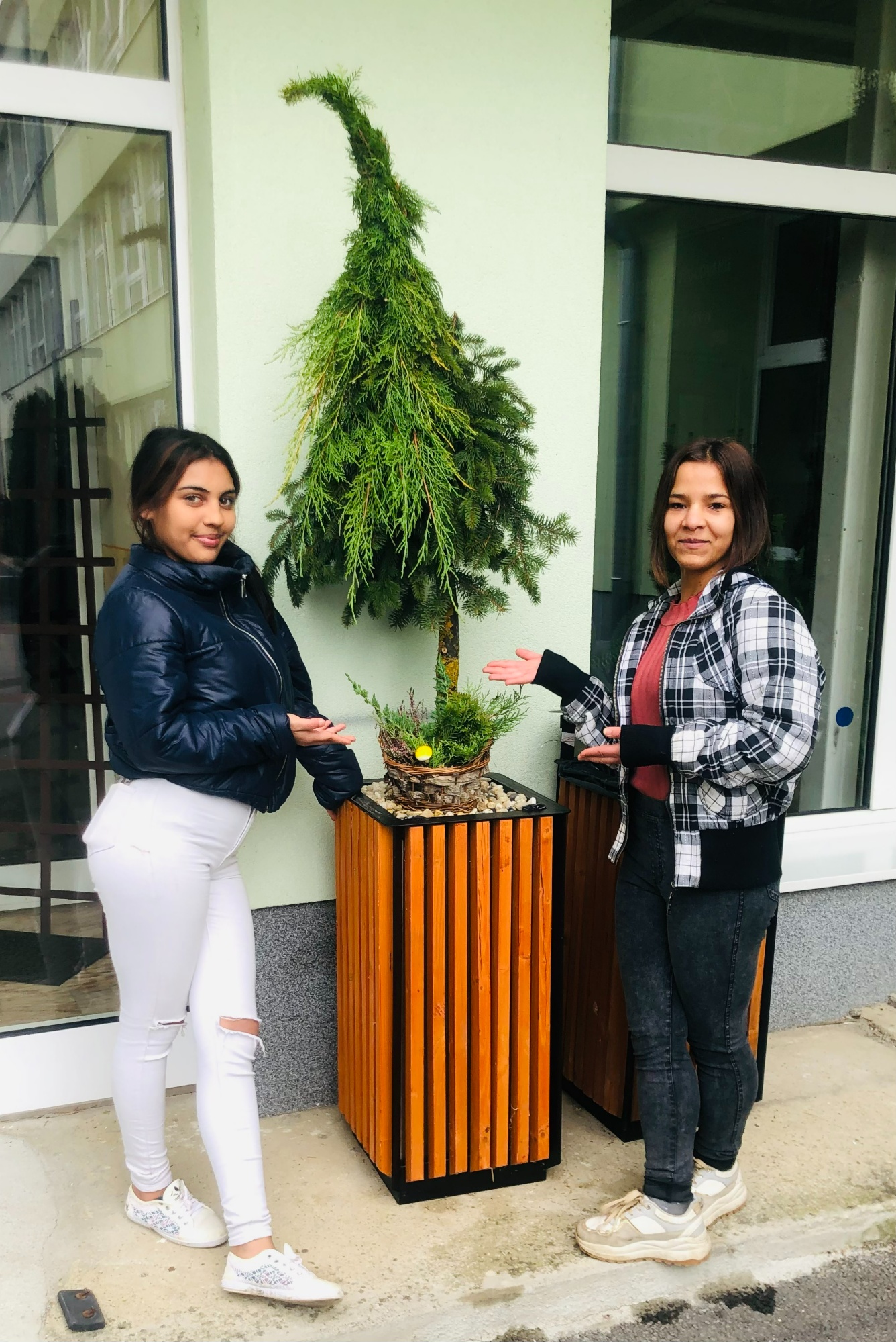 Vianoce sa pomaly blížia a ich čaro už cítiť aj pri vstupe do našej školy. Na odbornom výcviku žiačky 2.FP vyzdobili priestor pred vchodom. Spolu s pani majsterkou vytvorili dva krásne stromčeky, ktoré teraz zdobia priestor pred vchodom a pomaly budú navodzovať tú pravú sviatočnú vianočnú atmosféru. Ďakujeme dievčatám za ich šikovnosť, nápaditosť a ochotu pracovať s radosťou. Veríme, že ich práca prinesie úsmev a radosť každému, kto prejde okolo!