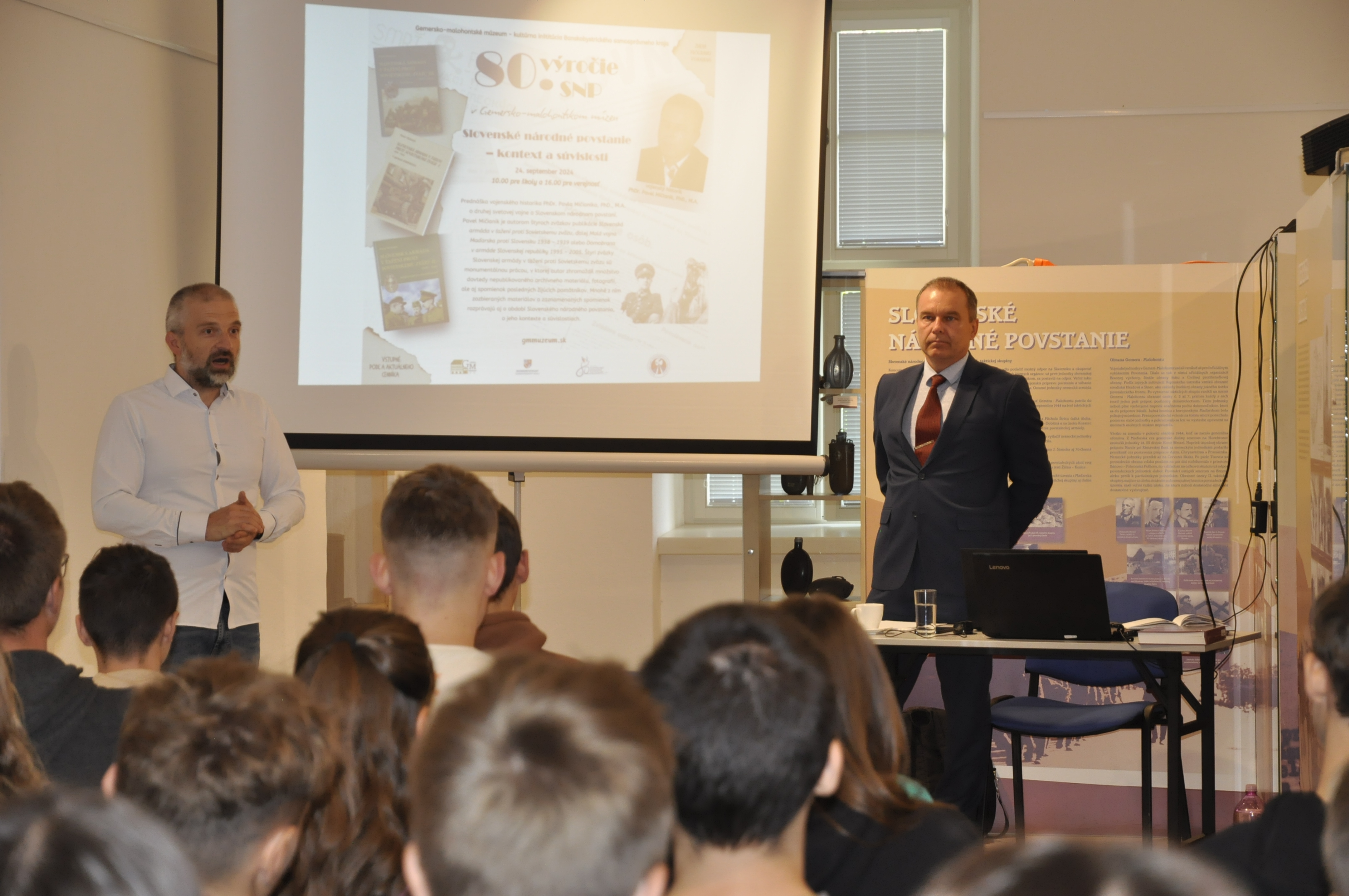 Veta, ktorá neprišla vo vhodnej chvíli, ale zmenila životy mnohých ľudí a zároveň ponechala odkaz ďalším generáciám. Pri príležitosti 80. výročia SNP sa v Gemersko-malohontskom múzeu uskutočnila prednáška vojenského historika PhDr. Pavla Mičianika, PhD. na tému Slovenské národné povstanie – kontext a súvislosti. Prednášky sa zúčastnili žiaci I.CR a I.S, ktorí sa dozvedeli o udalostiach z obdobia 2. svetovej vojny, ktoré povstaniu predchádzali a zároveň ho aj sprevádzali. SNP bolo prvé ozbrojené vystúpenie Slovákov, ktoré si sami naplánovali a pripravili. Práve preto je vhodné si odkaz týchto silných a odvážnych ľudí pripomínať. História je učiteľkou života a je dôležité, aby sa človek histórii nevyhýbal, ale aby si z nej zobral dôležité posolstvo, ktoré história nesie.
